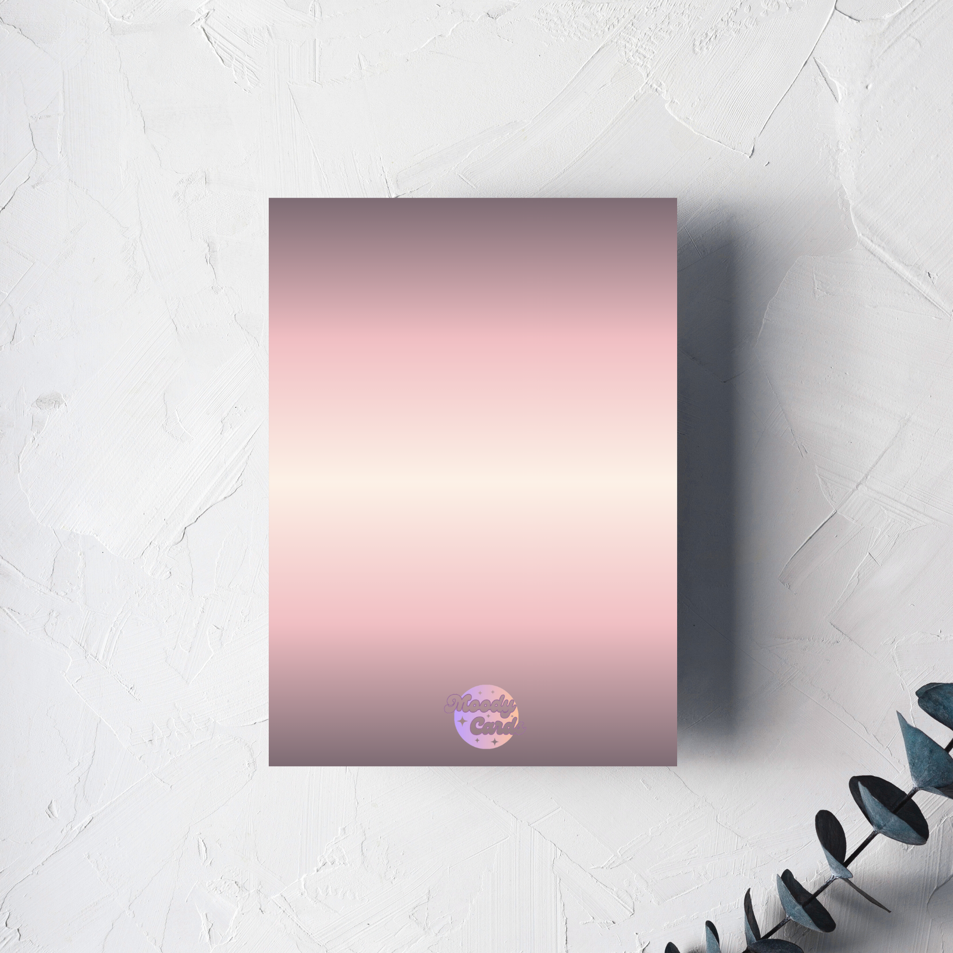 Invite a touch of serene magic with our enchanting Sorceress of the Rose greeting card. This striking 5x7" card features a beautiful, ethereal woman with cascading pink hair, dressed in a flowing purple gown. She is seated among a bed of intricate roses and ethereal vines, creating a scene that is both graceful and mystical. The entire illustration is framed by an ornate, vintage-inspired border, with soft, romantic lighting.