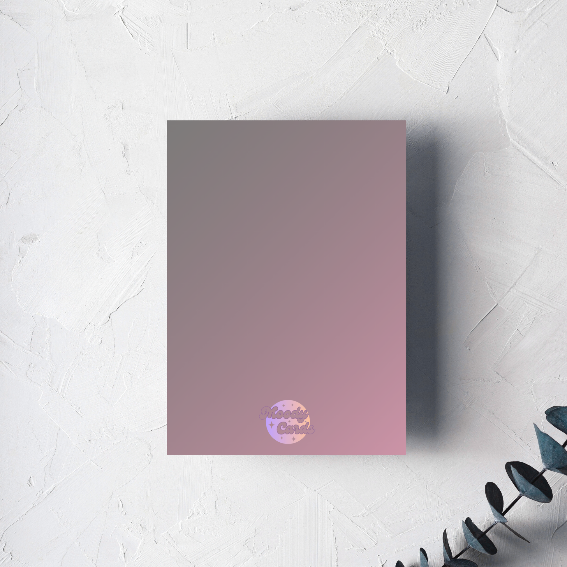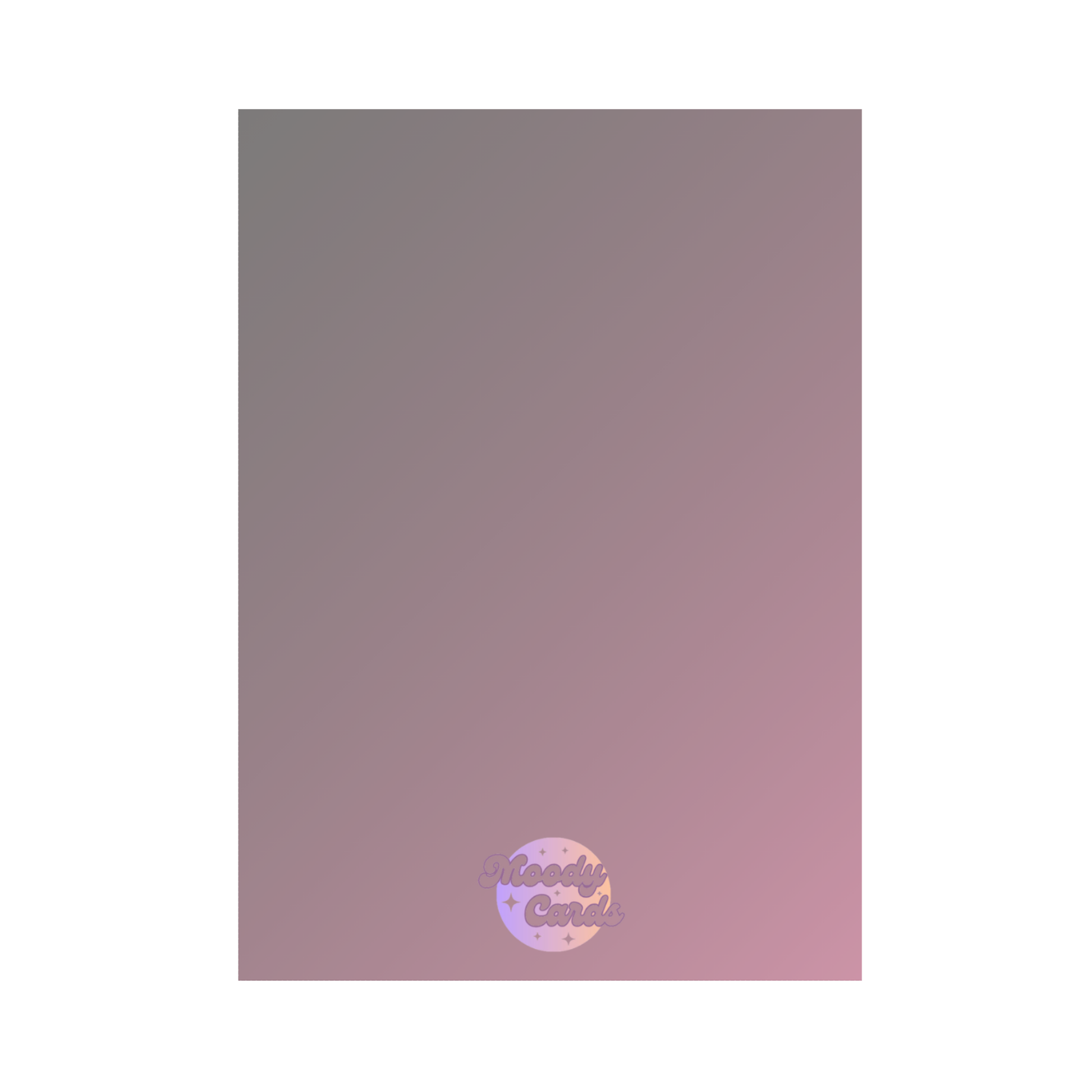 Embrace the beautiful darkness with our stunning 5x7" Gothic Cross greeting card. This card features an intricate, ornate cross design, centered on a soft, glowing pink background. The dark, detailed cross is surrounded by delicate, baroque-style frames and intertwined with elements of vintage-inspired florals and scrollwork, all rendered in a rich, moody palette of purples, golds, and black.