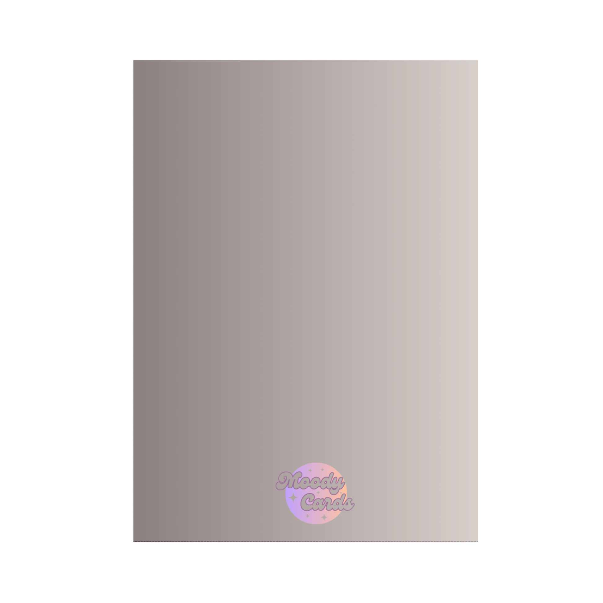 Step into the whimsical and a bit unsettling world of our Mad Hatter greeting card. This striking 5x7" card features a fantastical, tarot-inspired illustration of a jester-like figure with a purple top hat and wild, curly hair. The character's eccentric style, complete with ruffles and playing card symbols, gives the card a unique and darkly curious vibe.