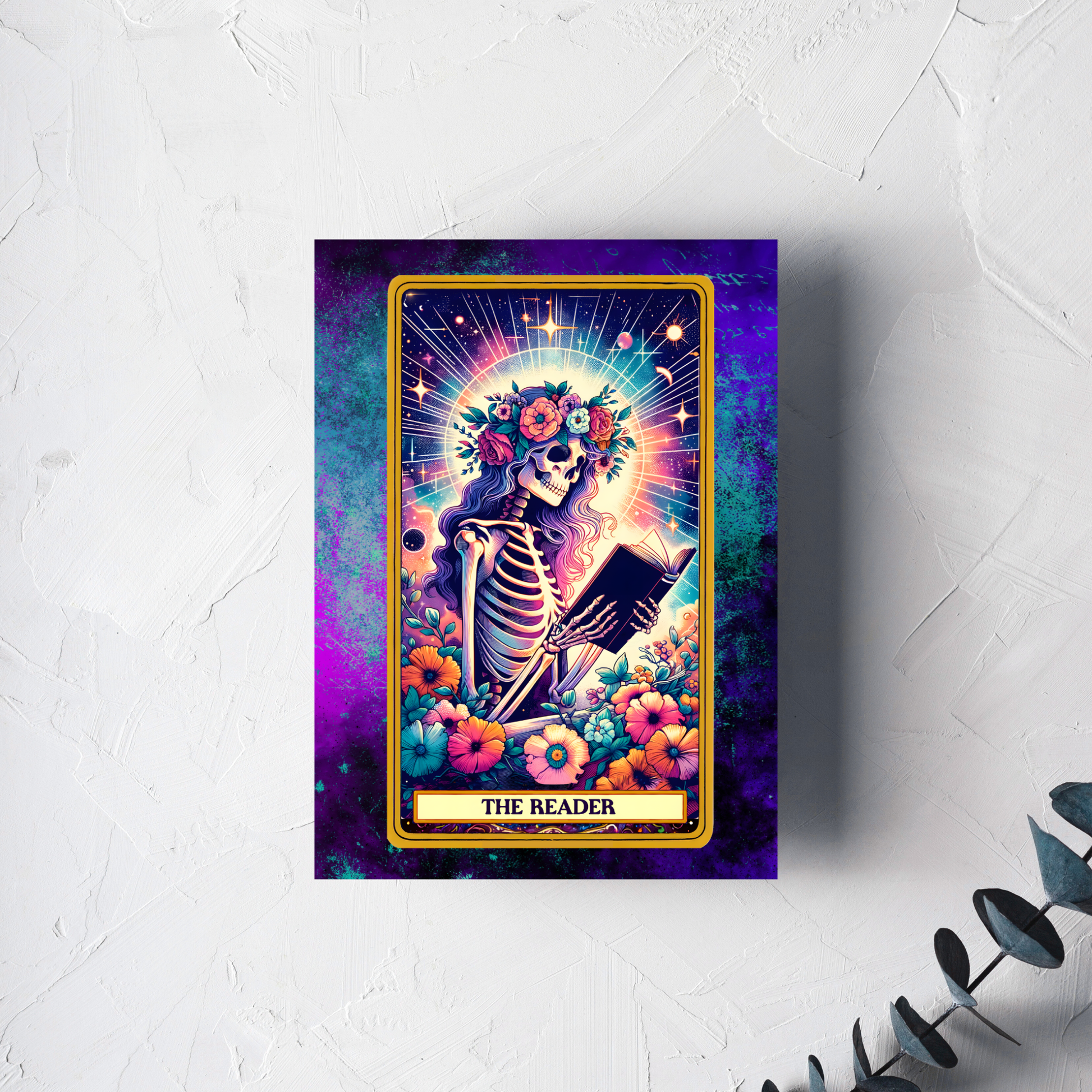 Design: High-quality, full-colour print featuring "The Reader" tarot-style artwork.