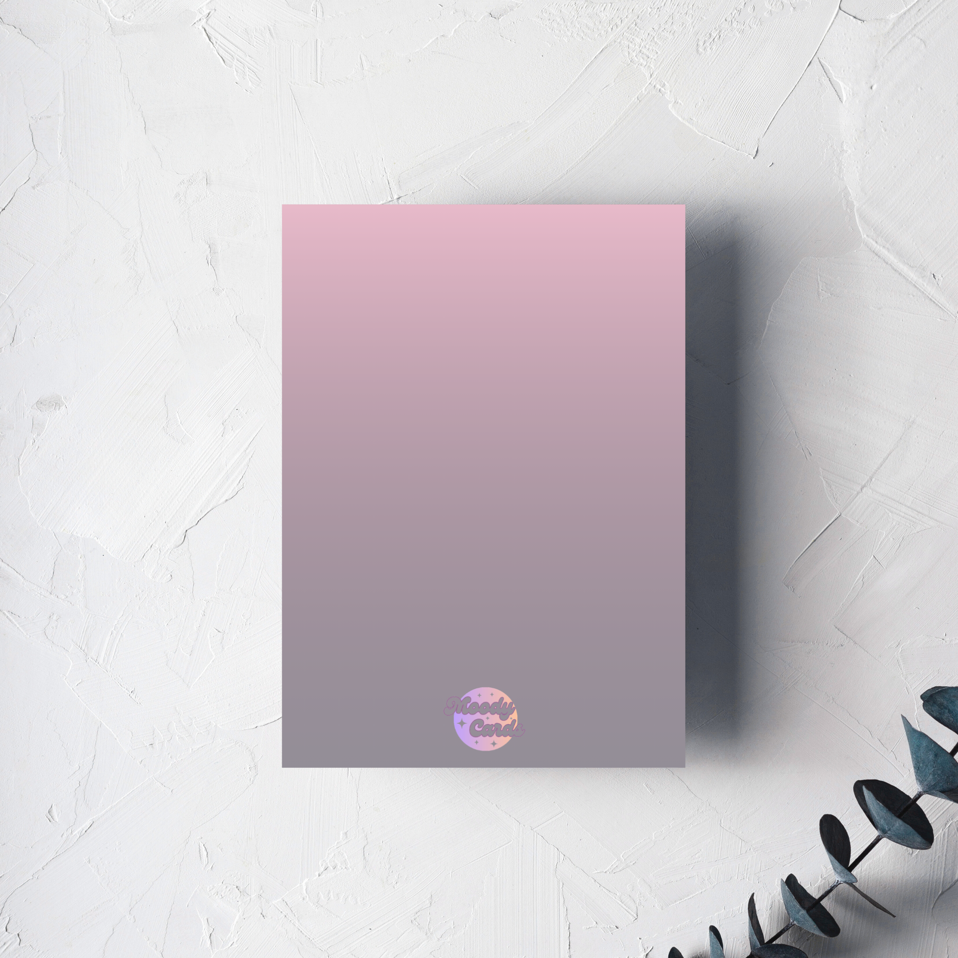 Unleash your inner magic with our enchanting Sorceress greeting card. This captivating 5x7" card features a beautiful, mystical illustration of a sorceress with flowing pink hair, adorned with delicate butterfly wings and a dark, lace-trimmed gown. The figure is framed by an elaborate, celestial-inspired border with soft, ethereal lighting and intricate details, giving the card a powerful and whimsical feel.