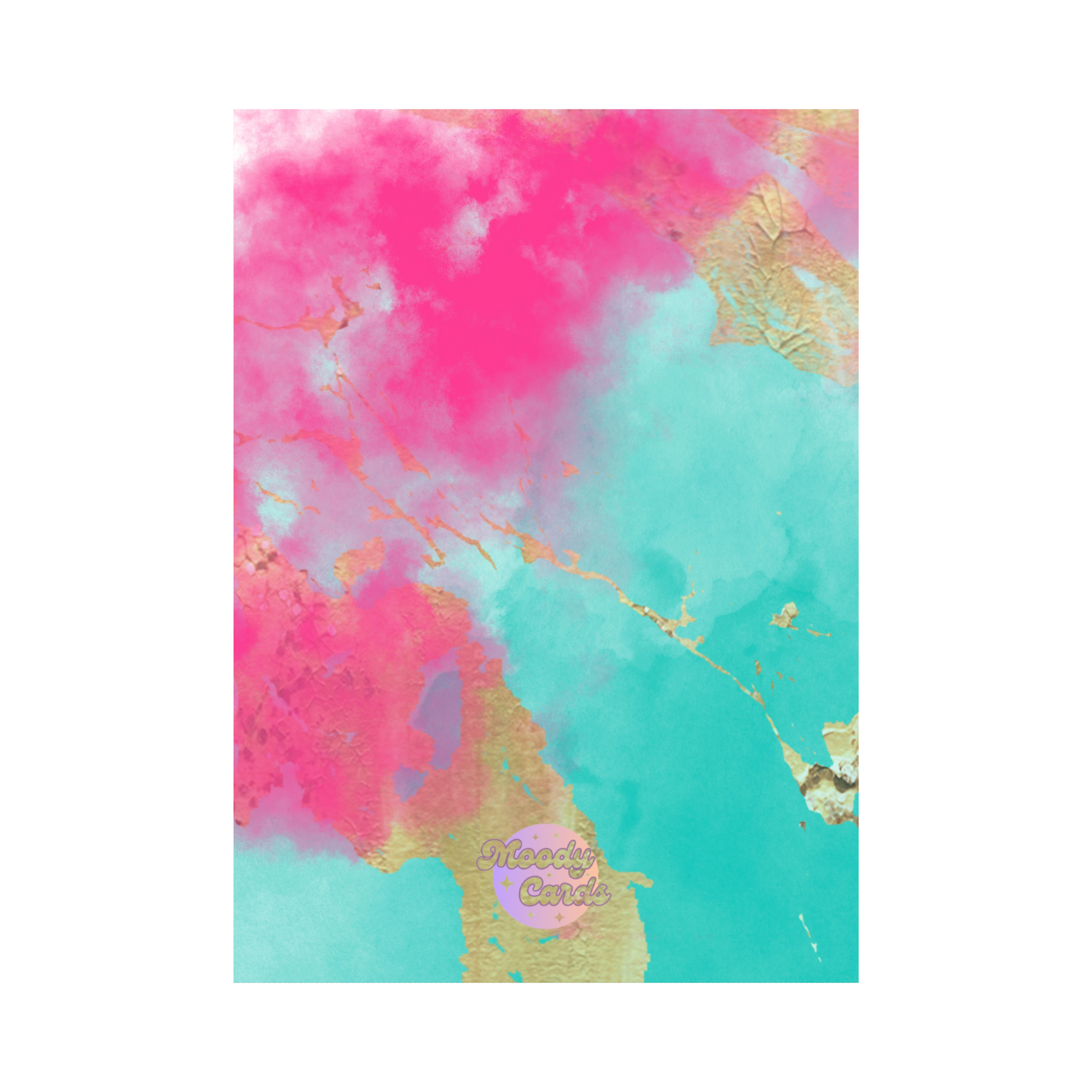 The background is a vibrant celestial scene, complete with moons and stars, all framed in an ornate, golden border. The dynamic and eye-catching design makes this more than just a simple card—it's a fun and memorable piece of art. The rich colours and intricate details are sure to bring a smile to anyone's face.